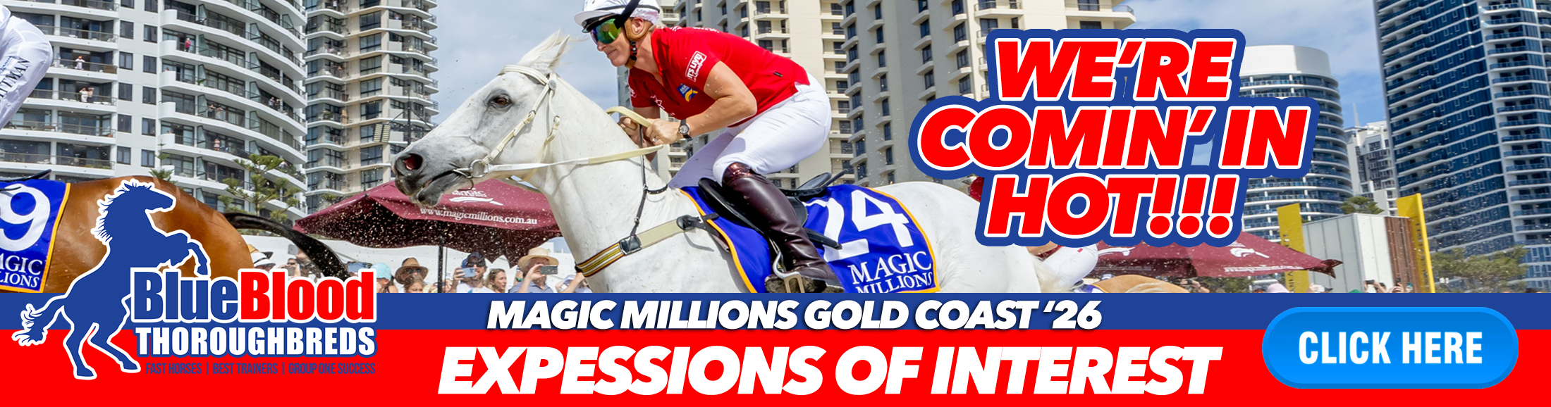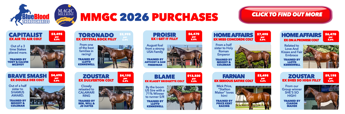 Experience the thrill of the track with Blueblood Thoroughbreds where your racing dreams take the lead. Our expert syndication brings the excitement of elite racehorses to your fingertips.