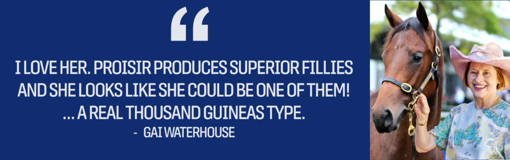 The Proisir filly is currently at Matt Vella’s stables in the Hawkesbury today, ready to commence being broken in.